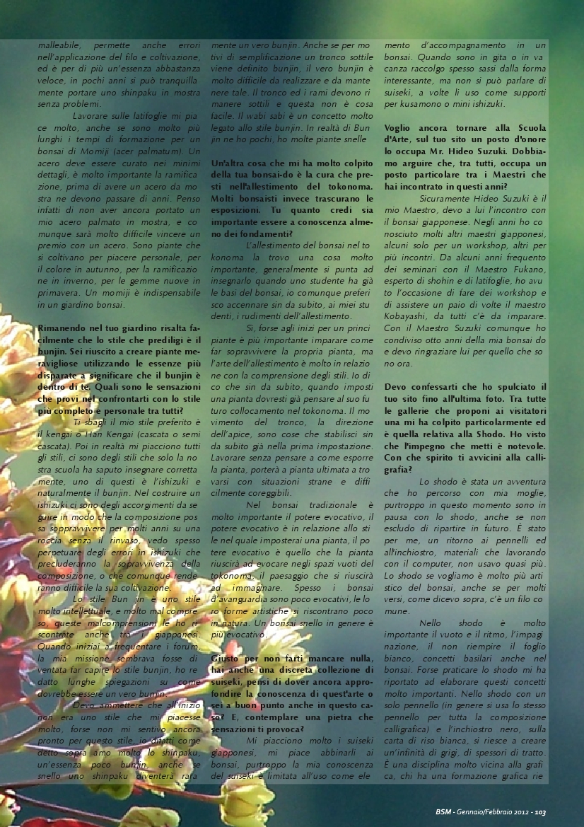 Intervista per Bonsai & Suiseki Magazine