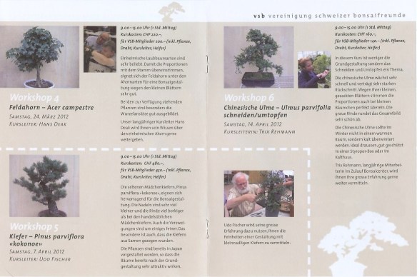 Corsi di tre o quattro serate, sulle cure di base del bonsai.