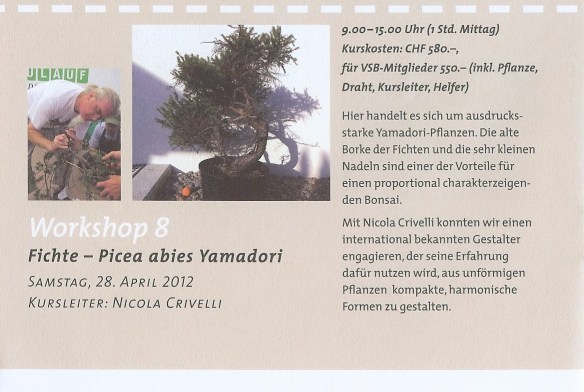 Corsi preparatori alla SCUOLA D’ARTE BONSAI Come Istruttore diplomato della Scuola d’Arte Bonsai, posso formare, seguendo il programma della scuola, persone ai primi quattro corsi del Primo livello. In seguito dopo un esame d’ammissione, sarà il corrente Maestro della scuola … Continua a leggere