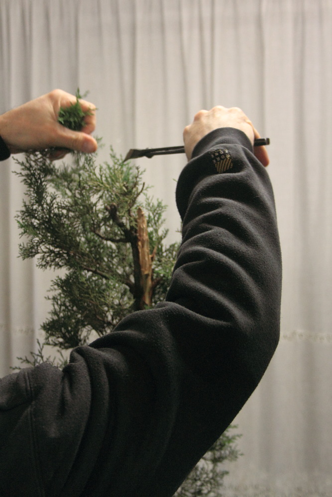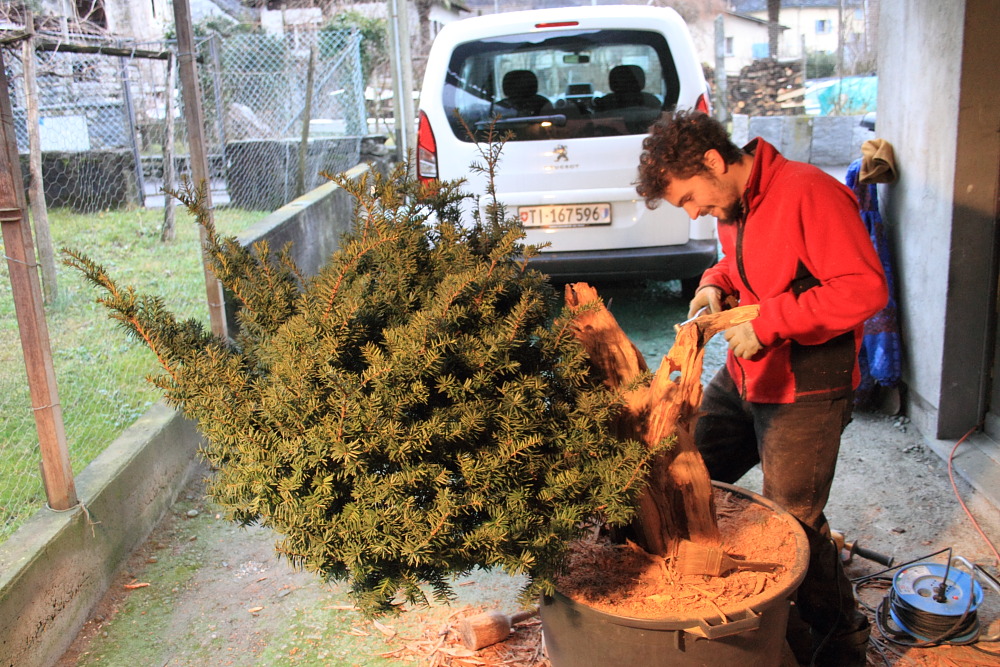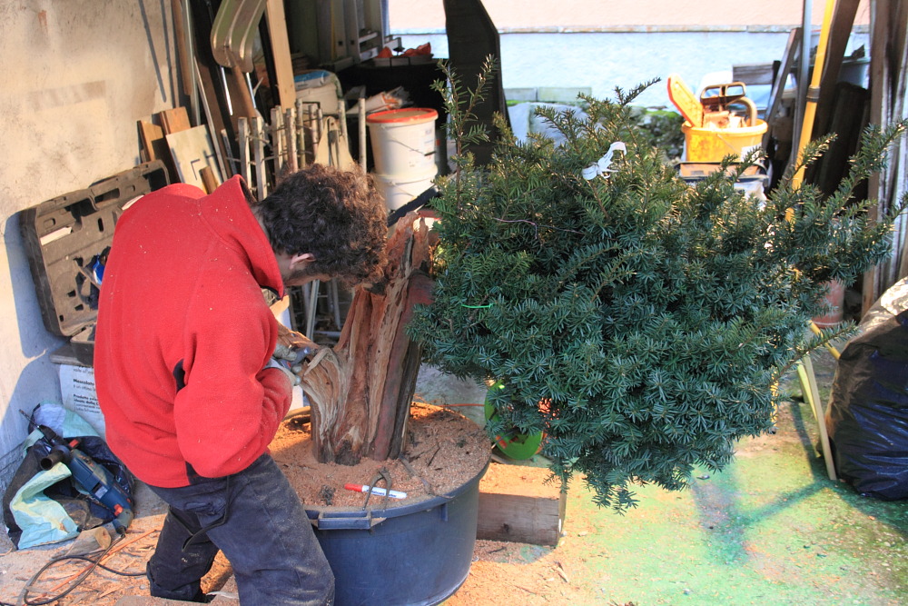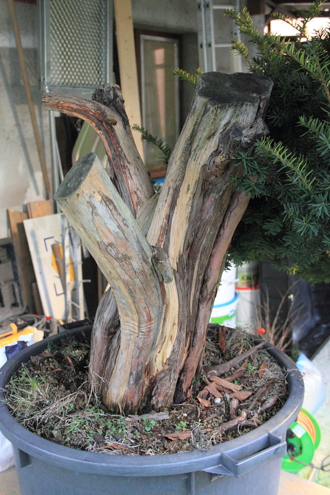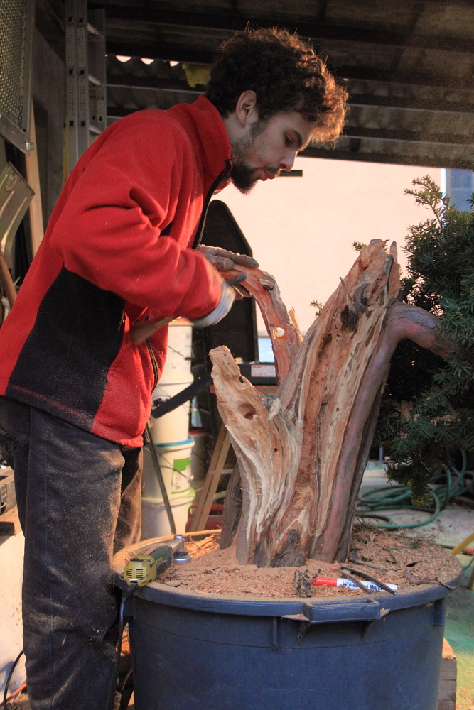 il tronco secco ha un interessante movimento a spirale che viene evidenziato da Deta a scalpello