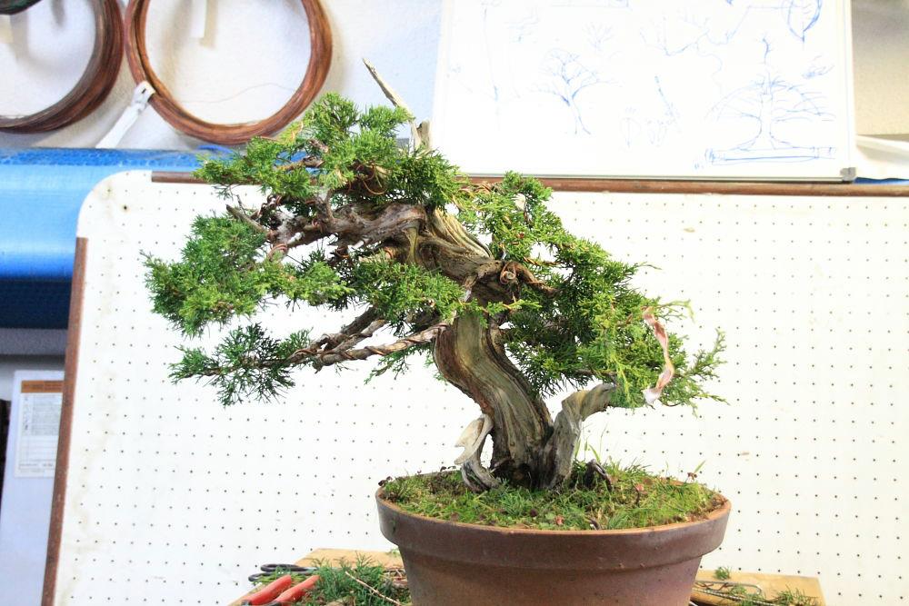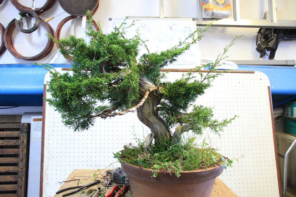 Molti anni fa con il club, avevamo comperato diversi di questi ginepri. Questo esemplare era appartenuto ad un vecchio socio del BCT, perciò si tratta di un vecchio bonsai con molti anni di vaso.