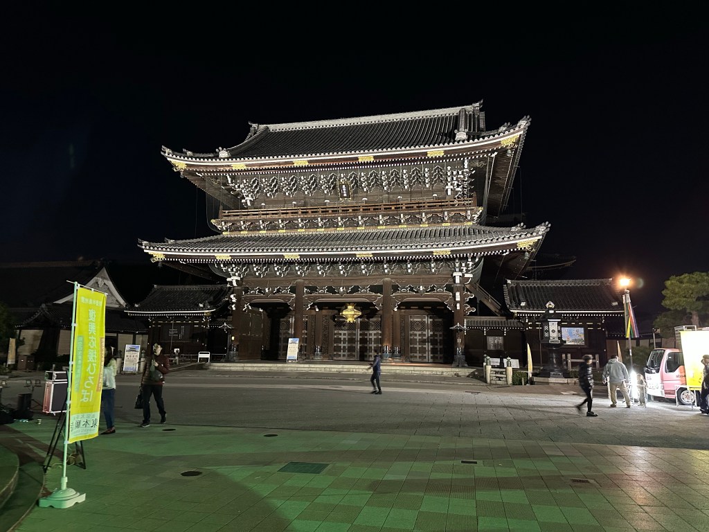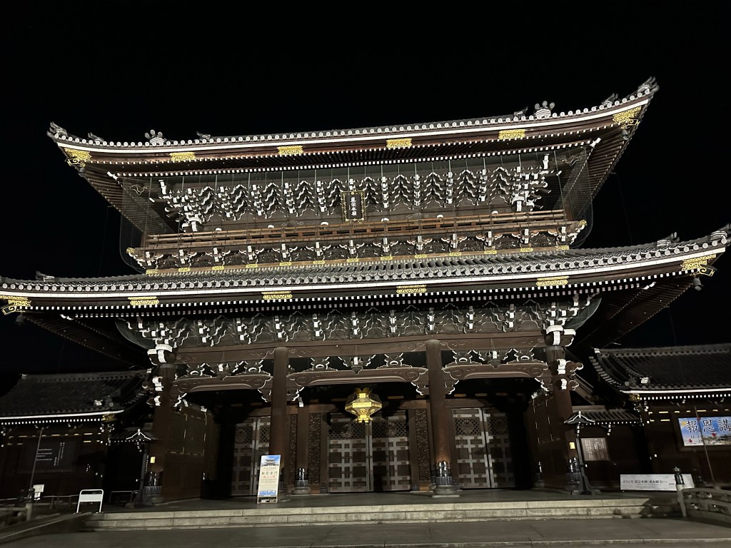 23 novembre dopo la Taikanten, passeggiata nei dintorni e visita serale alla pagoda di Kyoto e il suo fantastico parco