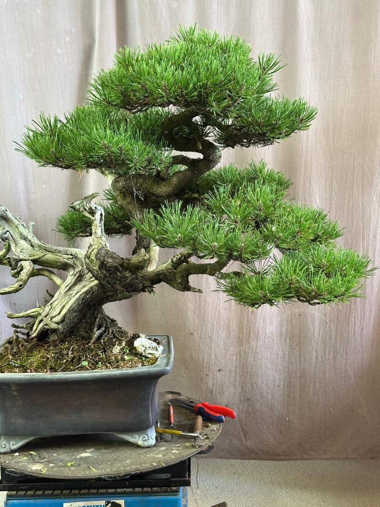Lavoro di preparazione di un pino mugo yamadori