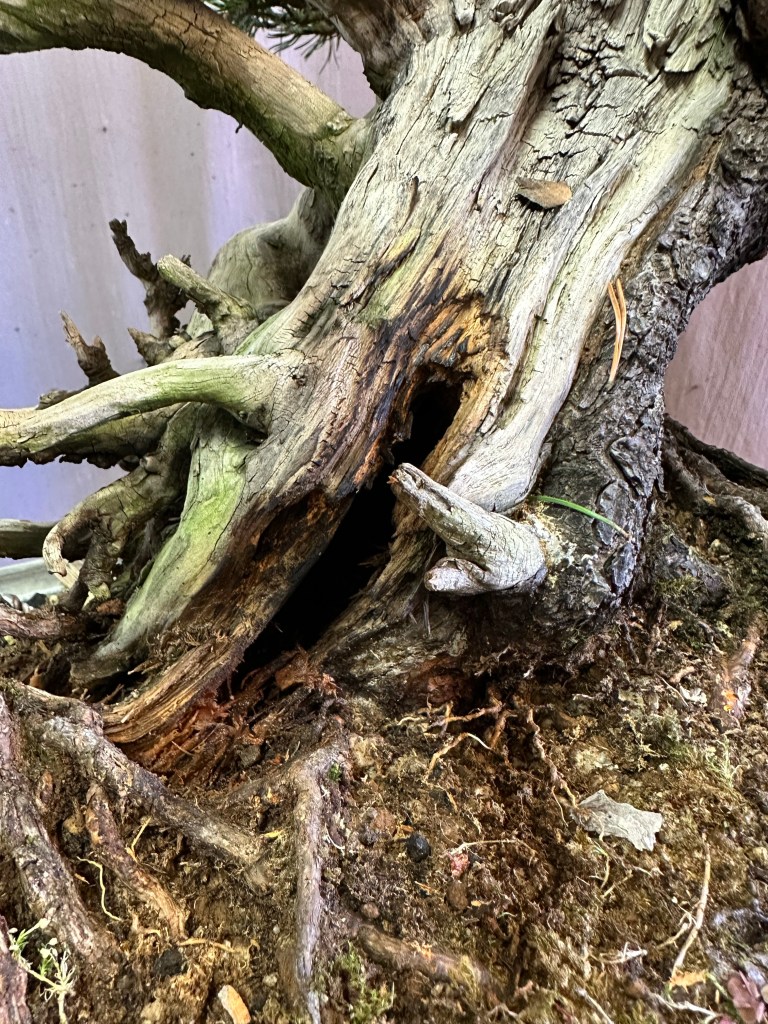Ho pulito il nebari e ho visto che il deadwood si stava deteriorando dove è a contatto con il terreno