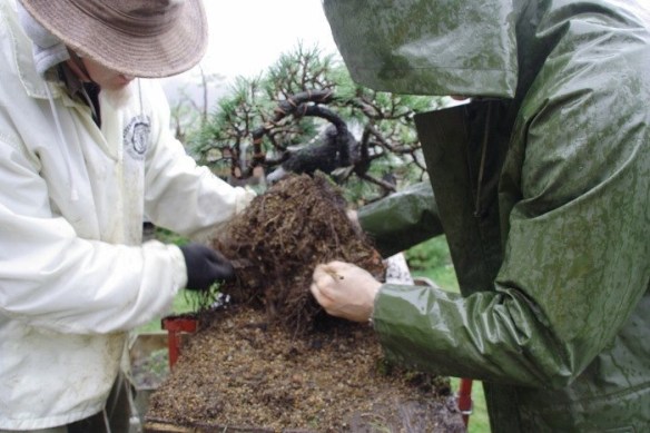 Districhiamo la zolla, il terriccio è prevalentemente composto di pomice e kiryu, perciò molto leggero e facile da togliere